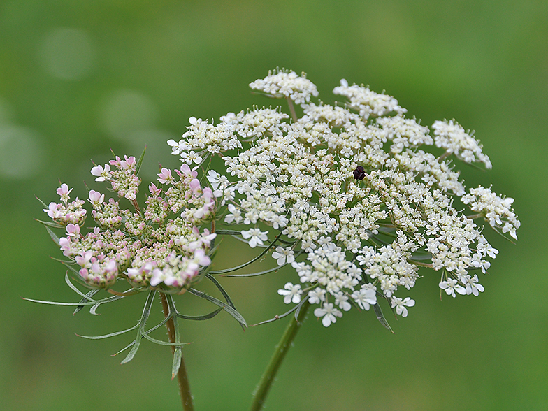 La carotte sauvage se reconnait à la petite fleur noirâtre se trouvant au centre de l'ombelle.